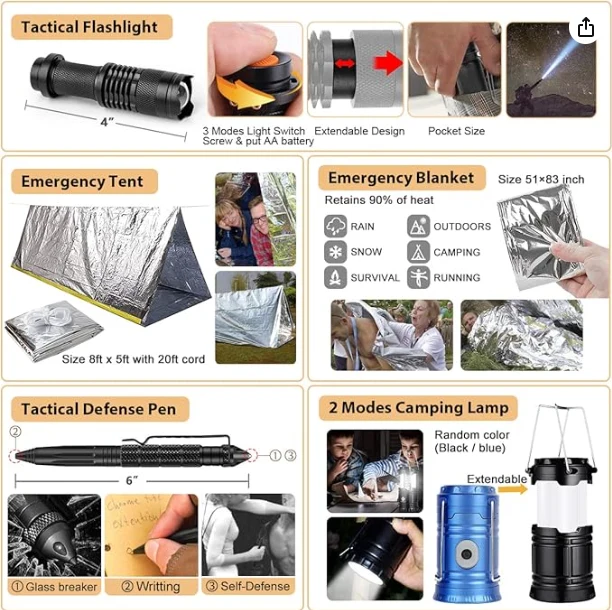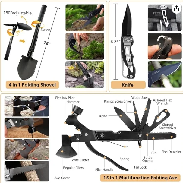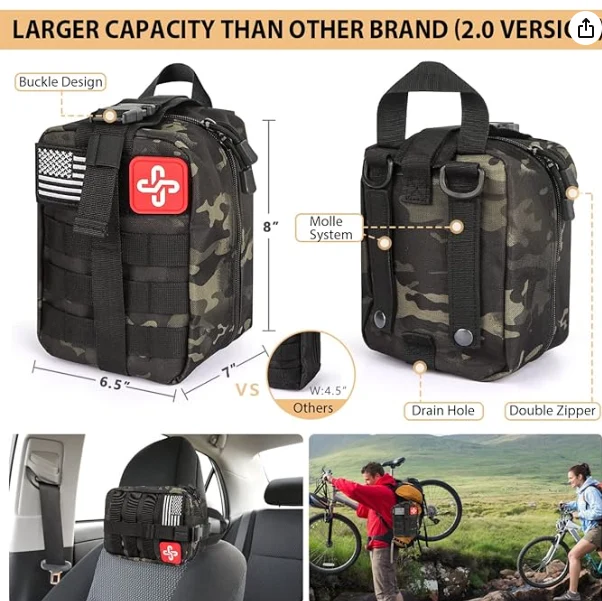 Cuimsíonn pouch garchabhrach amuigh faoin aer uirlisí marthanais ilchuspóireacha 250pcs iomlán. Tá an fearas marthanais agus na huirlisí is coitianta ann, freisin trealamh garchabhrach a bhfuil go leor acu chun cóireáil a chur ar theaghlach nó ar ghrúpa cairde faoi chúinsí éigeandála.