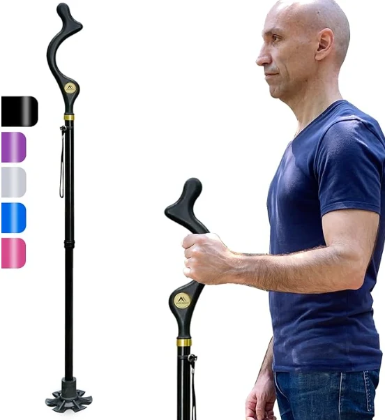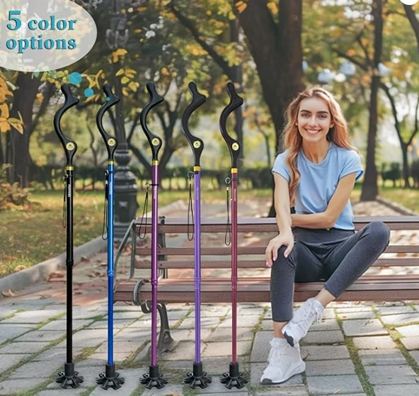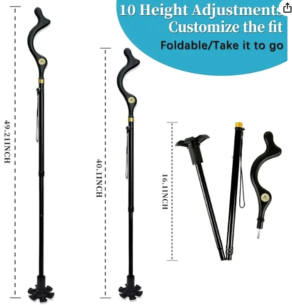 Trealamh dreapadóireachta lasmuigh cuaille hiking, cána siúil foldable d'fhir agus do mhná seanóirí le haghaidh cothromaíochta, cána fillte féin-sheasta, airde inchoigeartaithe frith-duillín inchoigeartaithe bata siúil cóimhiotail éadrom do chúnamh soghluaisteachta taistil