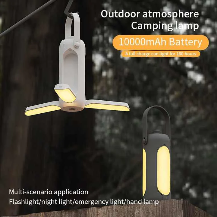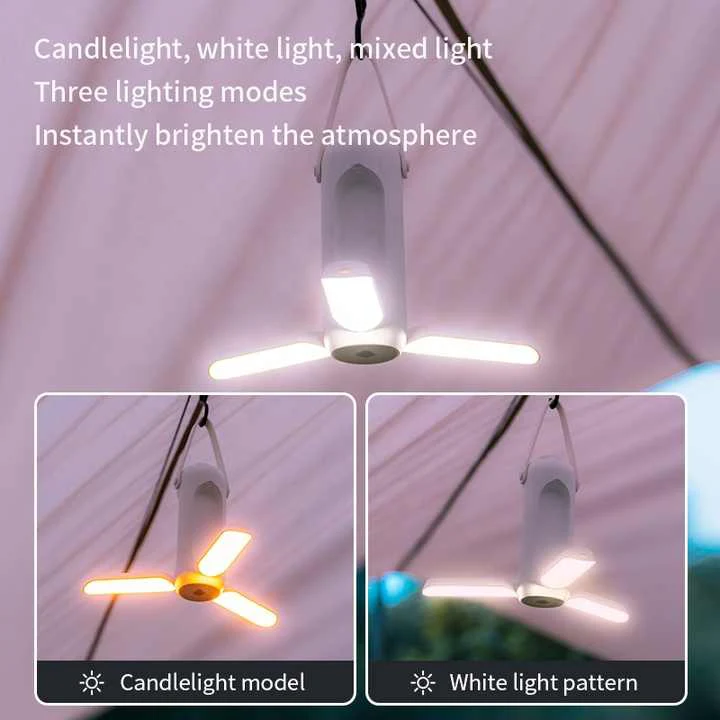 Solas campa iniompartha USB, bain úsáid as an láimhseáil tógtha isteach ar a bharr chun an laindéir ualaithe éadrom a iompar nó a chrochadh, nó an diffuser a bhaint agus an crúca bun cuasaithe a úsáid chun an laindéir a chrochadh bun os cionn chun limistéar níos fairsinge a lasadh