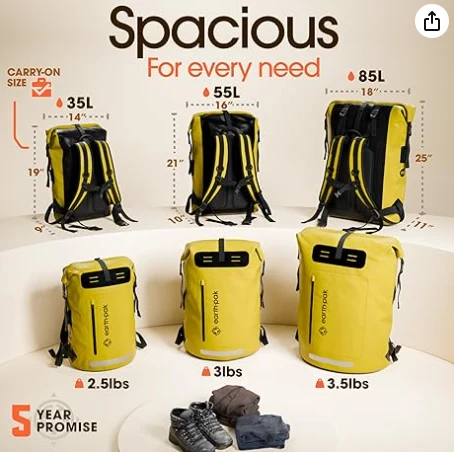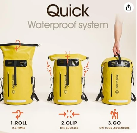 Mála duffel tirim uiscedhíonach, 100% uiscedhíonach chun a chinntiú go bhfanann do ghiar go hiomlán tirim agus tú ag taisteal, ag cadhcáil, ag rothaíocht, ag comaitéireacht, ag campáil, agus ag iascaireacht