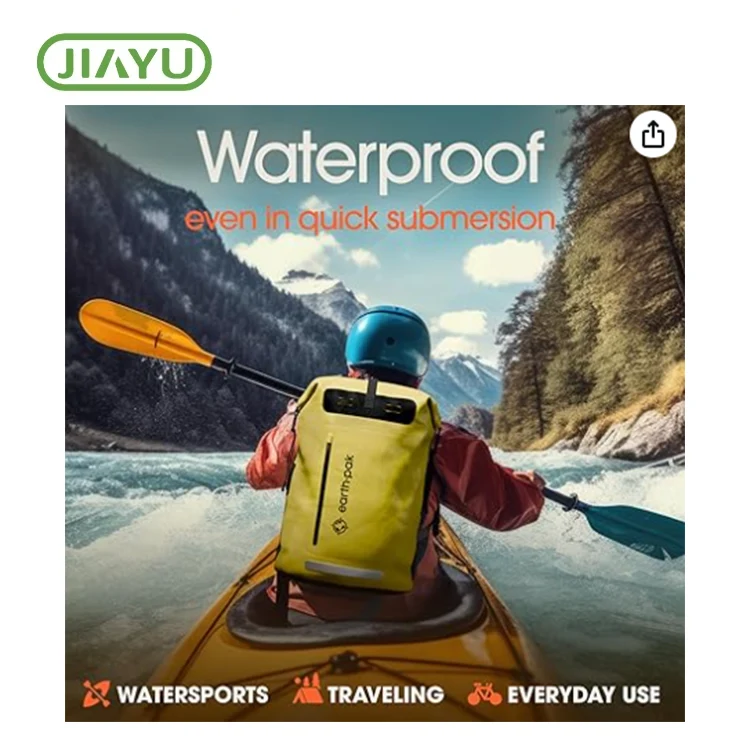 Backpack tirim uiscedhíonach mála duffel. Tá zipper mór-splancscáileán-cruthúnas ar an taobh amuigh le haghaidh míreanna gasta agus dul go tapa, agus póca zippered, urrann mogalra, agus fáinne eochair ar an taobh istigh.zhejiang Jiayu Products Co., Ltd. Soláthraíonn fáinní áisiúla D atá ceangailte le strapaí ghualainn agus lúbadh córais molle pointí ancaire ar an mbád agus iad ag bádóireacht nó ag rothaíocht.